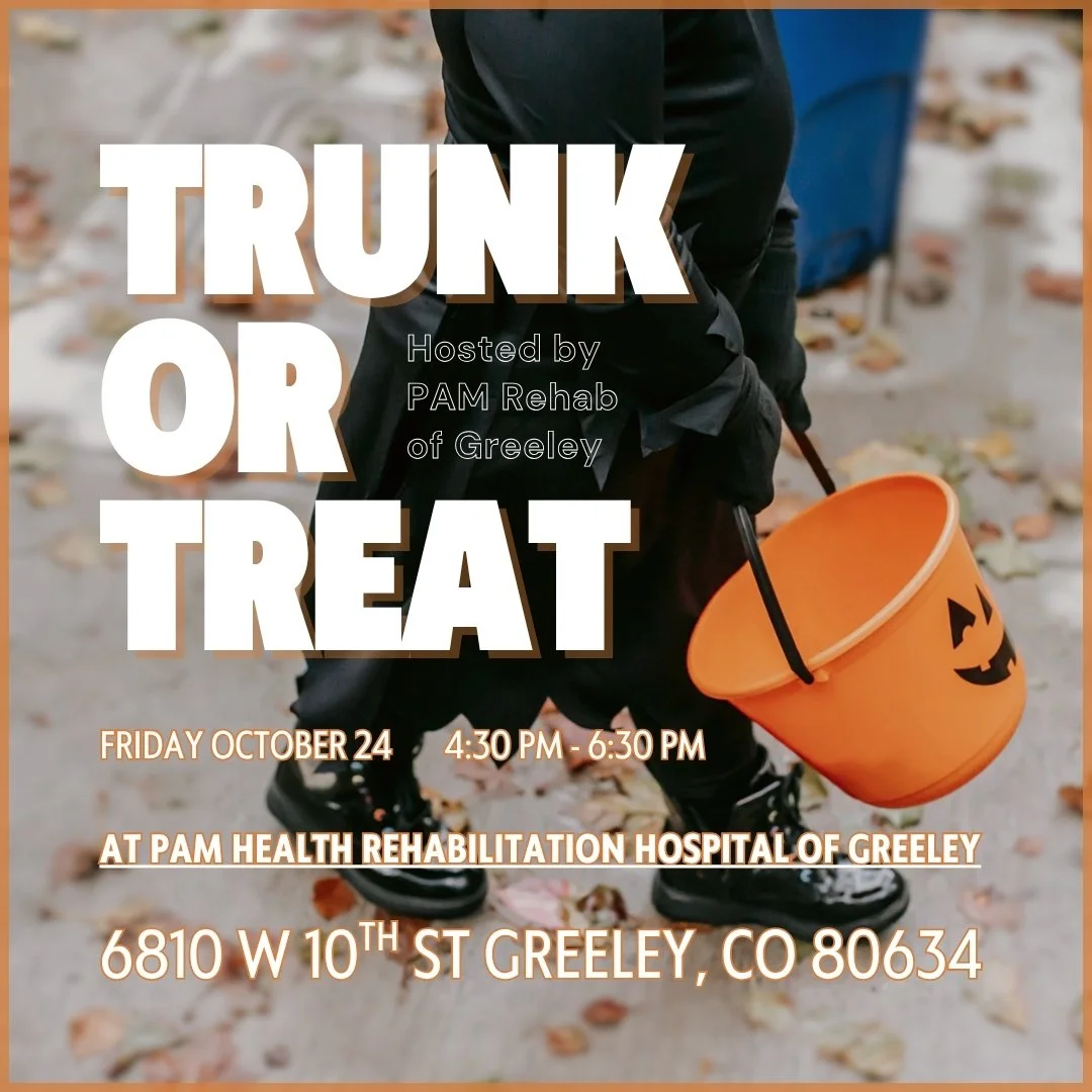 Join us at PAM Rehabilitation Hospital in Greeley for Trunk or Treat. Costumes, candy and fun for all ages!