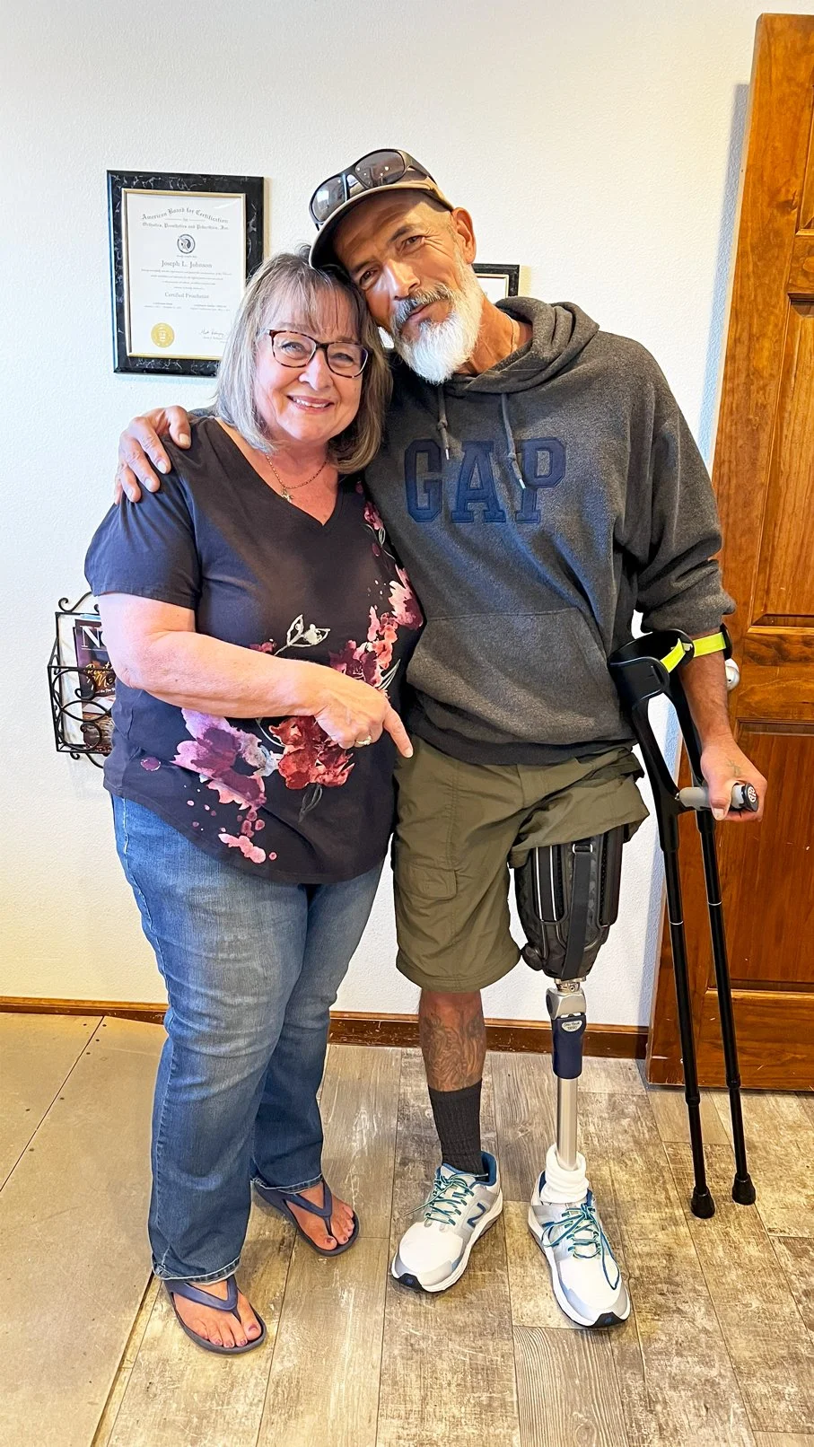 Eddie says God never left his side and placed angels in his life. One of those was Rose Elder, who sought help for him and connected him with Joe Johnson, CEO of Quorum Prosthetics and founder of One Leg At A Time, who stepped in to make sure Eddie received the care he needed.